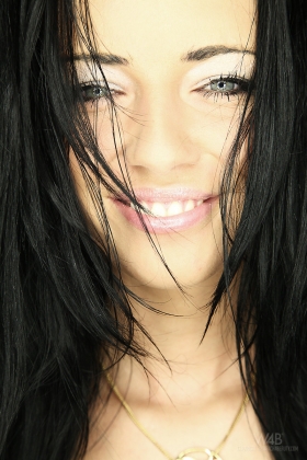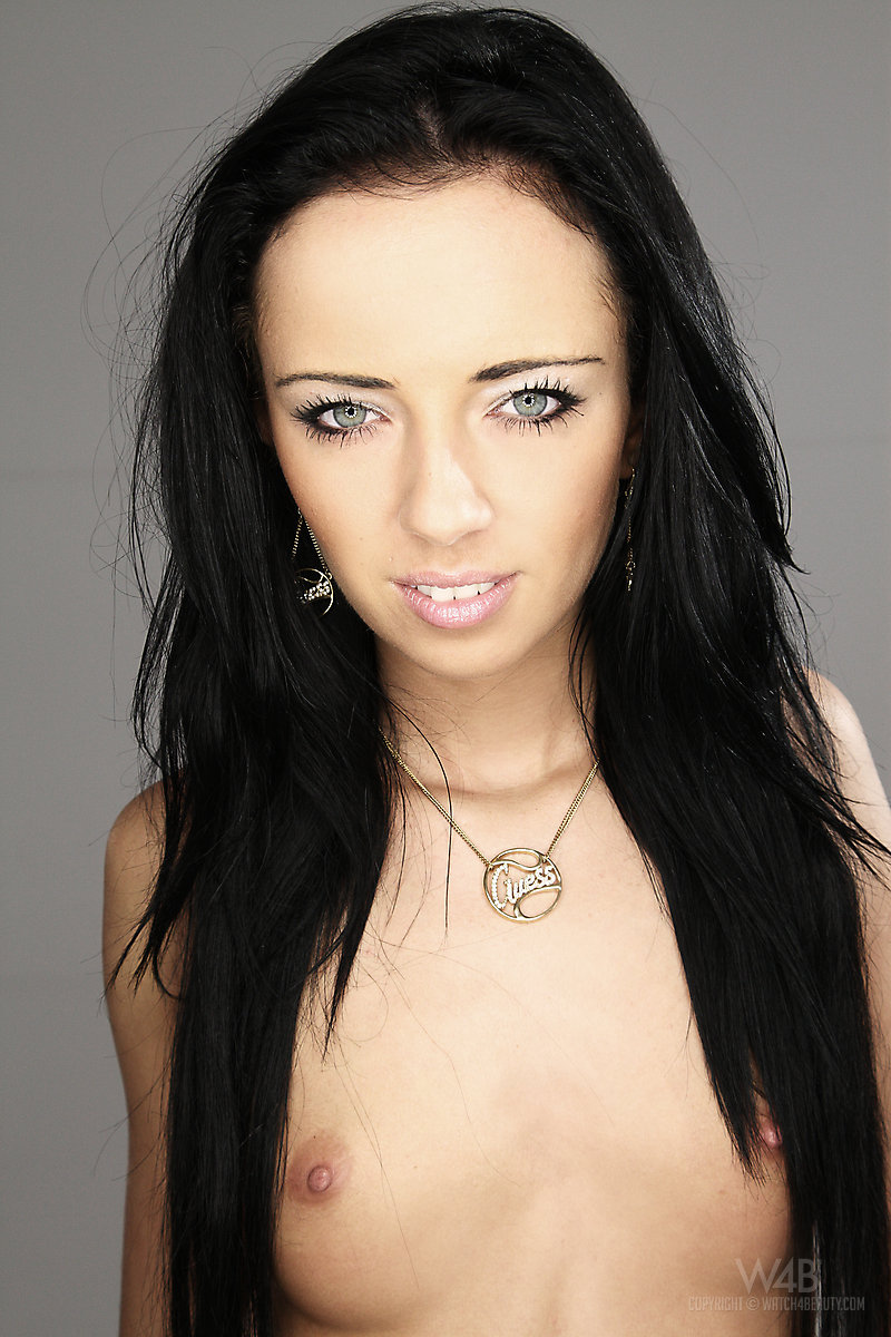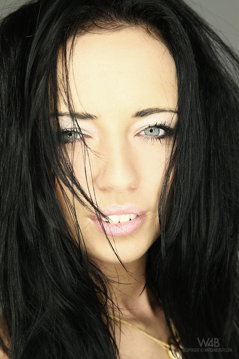 Lecherous lady undresses before stretching out her pink pussy lips while caressing.