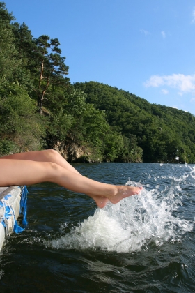Posh babe goes for a walk on a boat to reveal the naked beauty of her hot smoking body.