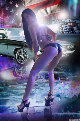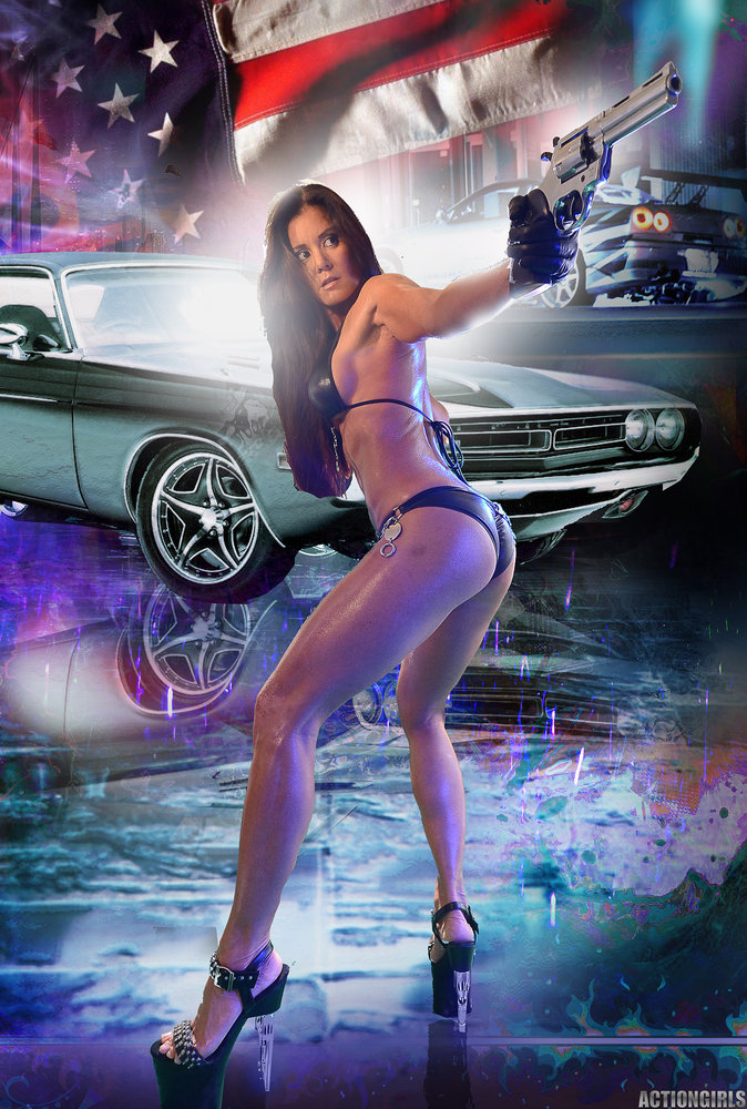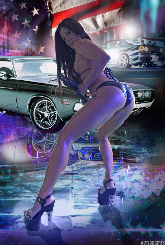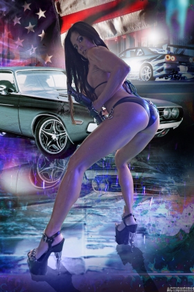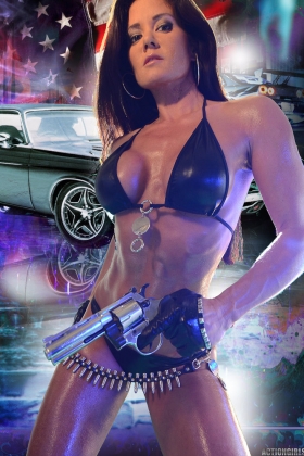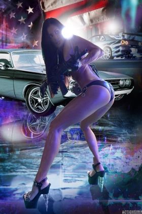 Hardcore babe in spectacular leather pants & bra posing for pics in a graffiti place