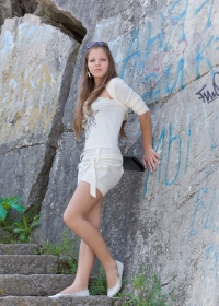 Naughty hottie goes for a walk during which she takes off her sexy outfit