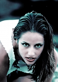 Skinny cutie swims in the local river in her sexy outfit but later she takes it off