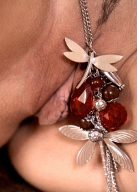 Glam blonde wears high-heeled shoes and black lingerie at home but later she undresses to use clothes-pegs on