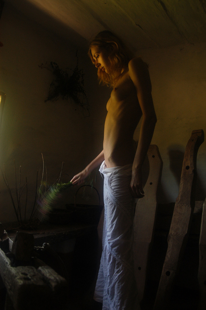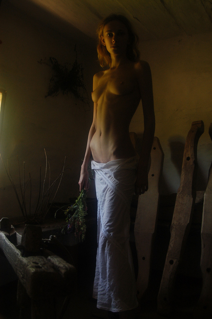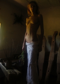 Gentle and even dreamy babe spices her days with spending time half-naked indoors, as well as outdoors