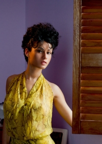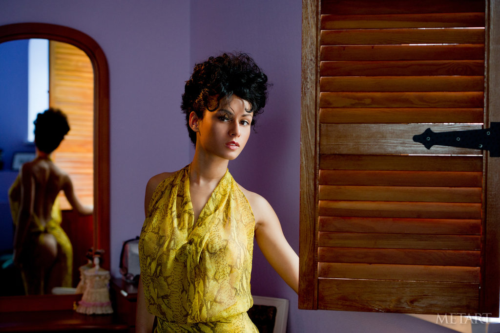 Tremendous brunette darling with beautiful boobs and hairy snatch on hot solo pictures