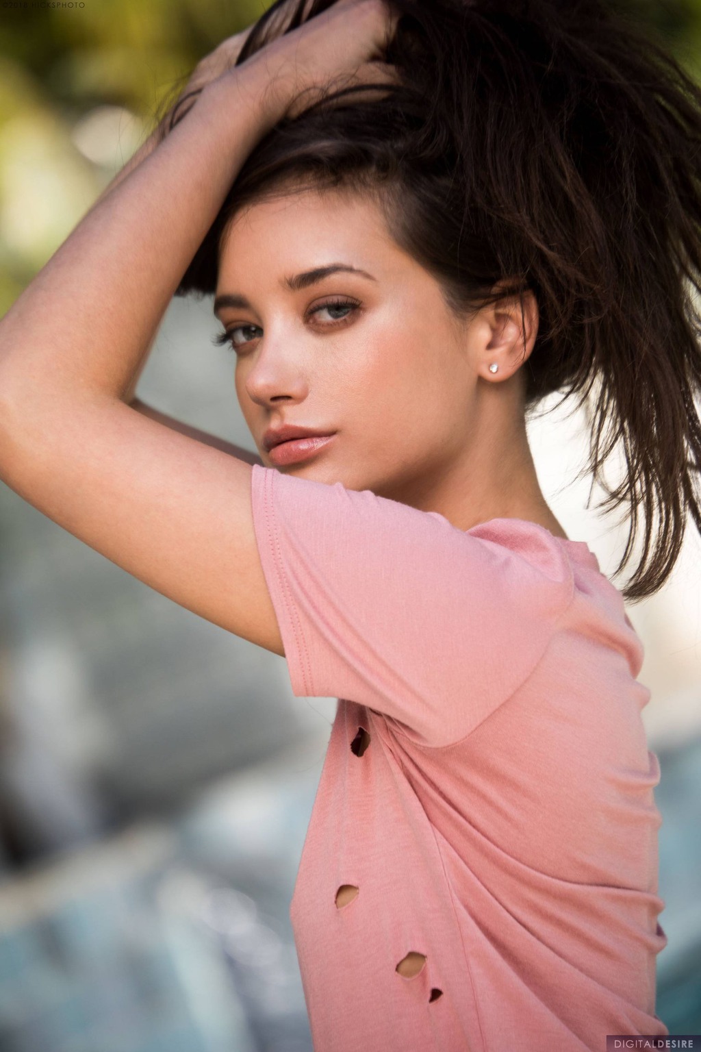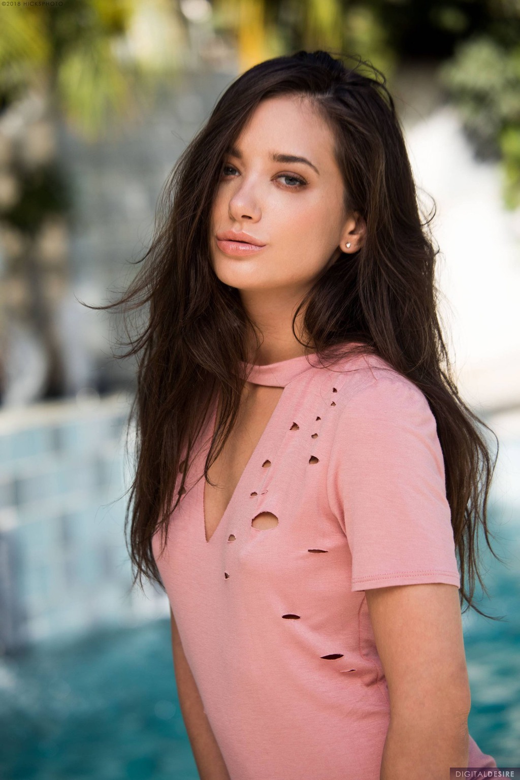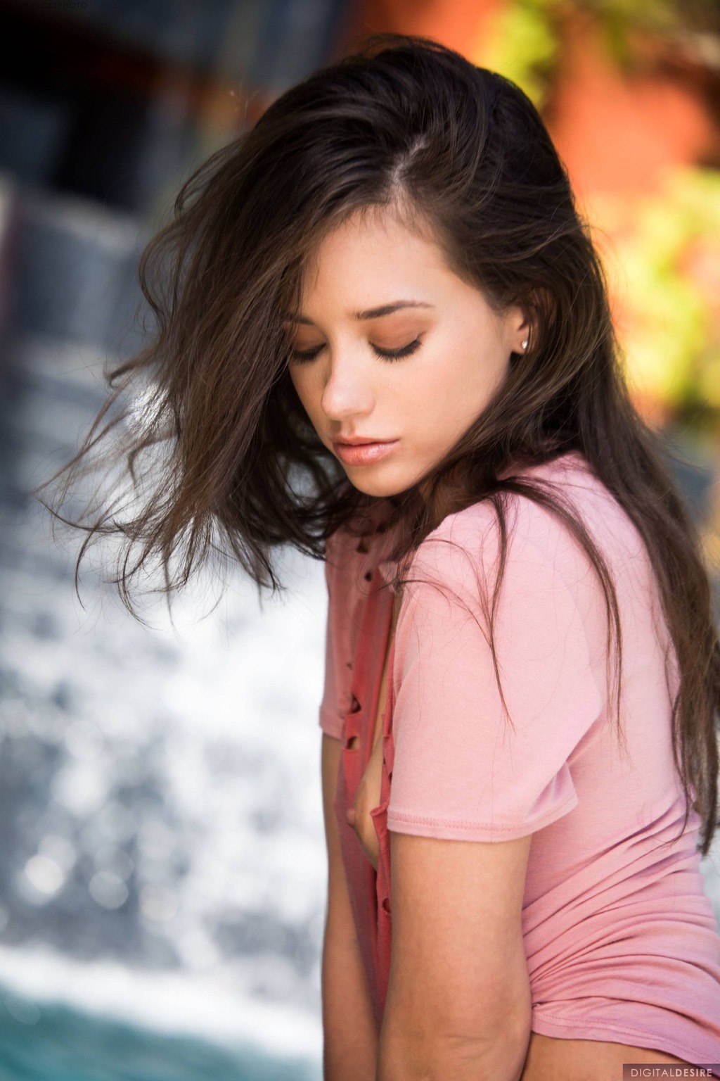 Hot brunette poses naked in the outdoor pool to get her total satisfaction