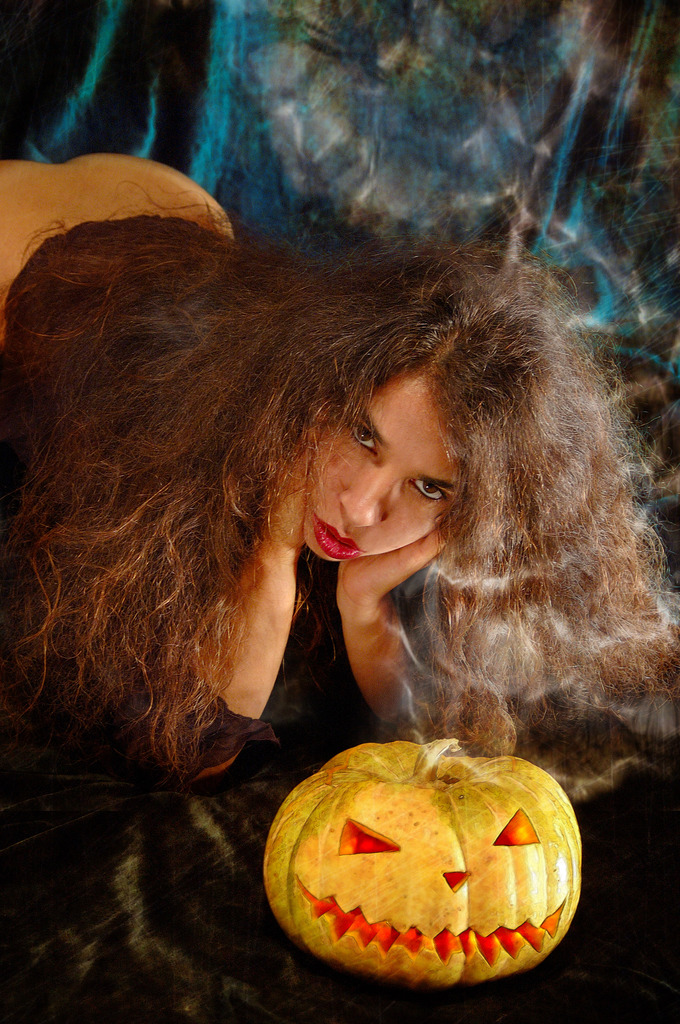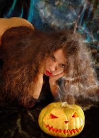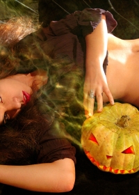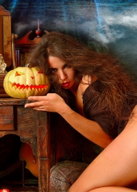Sweet chick is celebrating Halloween touching and demonstrating her sensational body