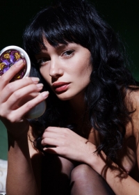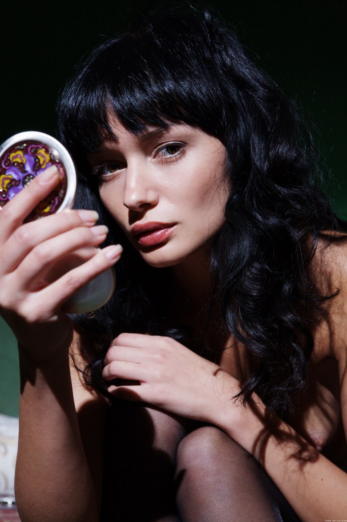 Wearing nothing but some thigh high stockings, this thin, sexy girl checks herself out.