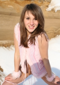 Slim and very hot cutie takes off her clothes when walking in the fresh snow.