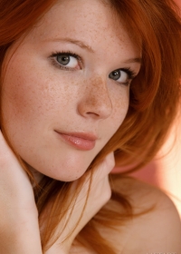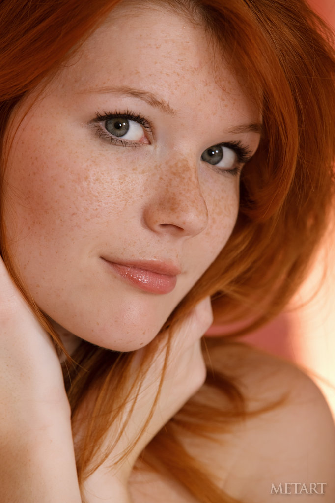 Gorgeous red-haired cutie takes off her black lingerie set to bare her beautiful boobs and pussy