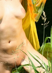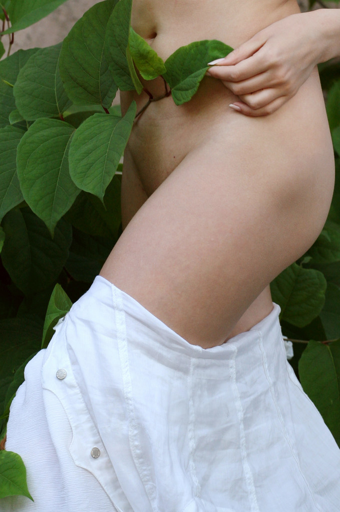 Slim blonde spends her day in the garden where she stripteases and even masturbates