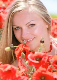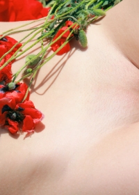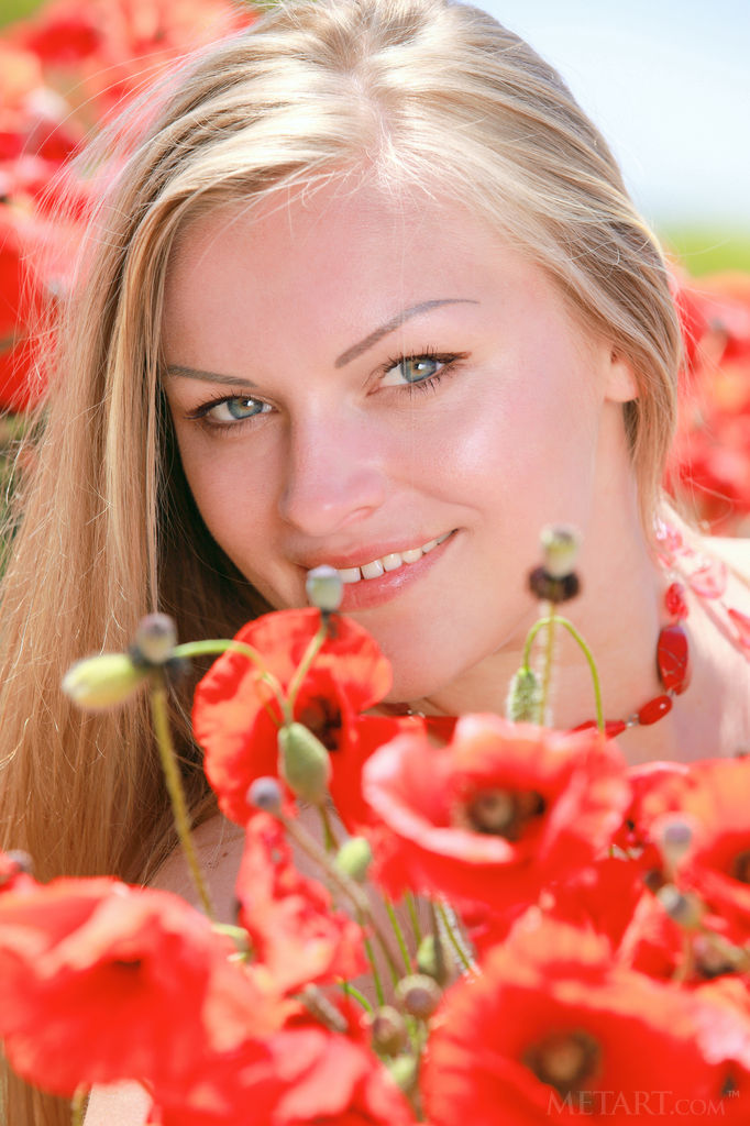 Sweet blondie reveals her splendid body while posing naked in an endless flower field.