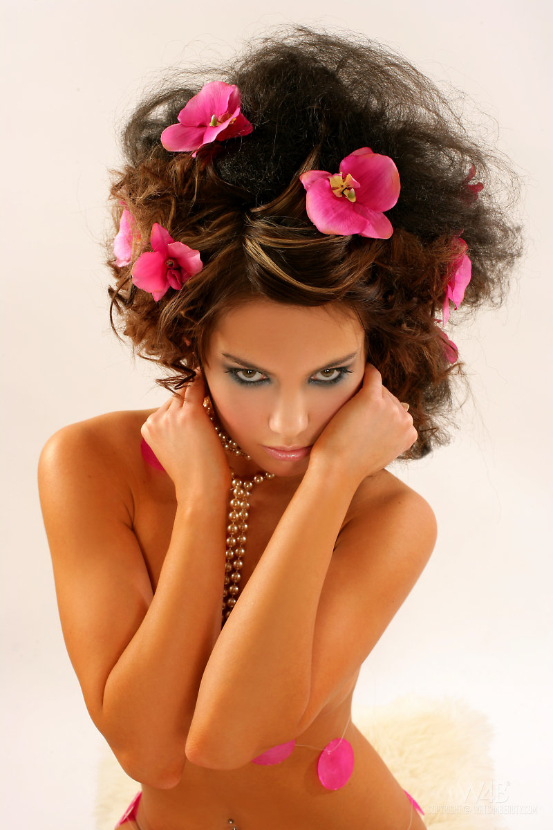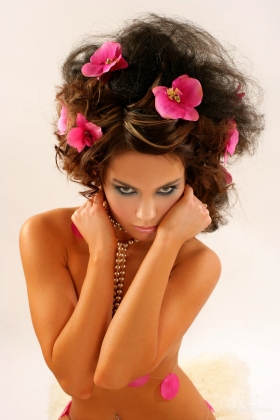 Yummy babe with flowers.