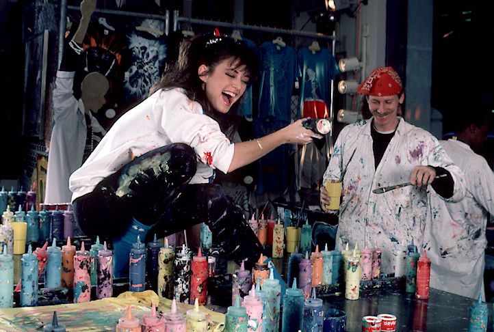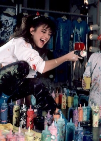 Curly young brunette retro girl is hotly undressing in various sex poses to show boobies and young hairy pussy