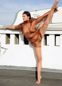 Watch an incredible babe reveal her amazing boobies and pussy on the rooftop.