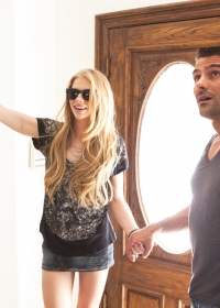 Strong dude fills a tight throat and shaved pussy of his hot blonde babe with dick.
