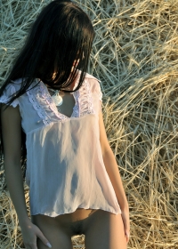 Sassy teenager spends solo time on fresh harvested hay in the fields while undressing.
