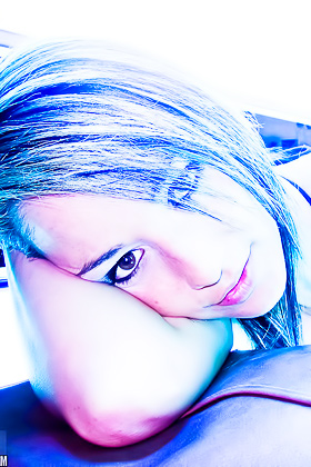 Alluring brunette squeezes her swollen melons and nipples before caressing her wet pussy.