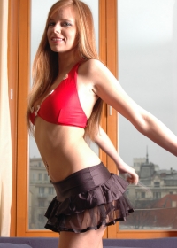 Playful ginger hottie performs a passionate dance during which she takes off her sexy outfit