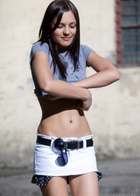 Stunning photo session of a brunette girl posing wet and all naked, ready for action