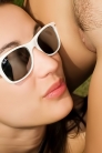 Blonde cutie spends time in the garden in yellow bikini but soon she bends down to open holes