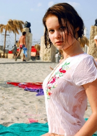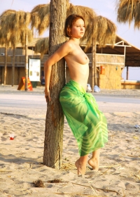 Beautiful brunette spend a hot day on the beach but later swims naked in the sea