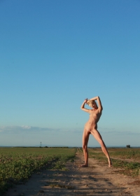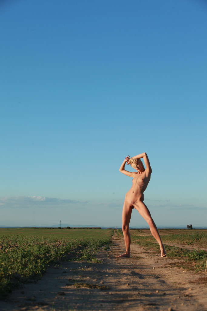 Svelte model disrobes in the wild and plays hard rubbing her butt & pussy on the ground.