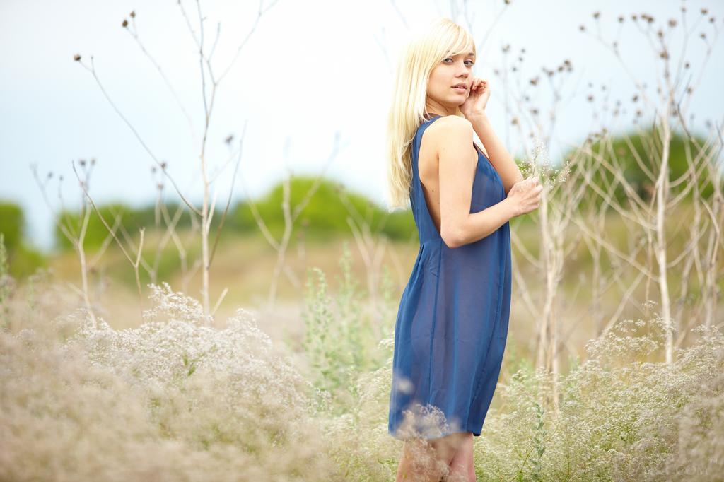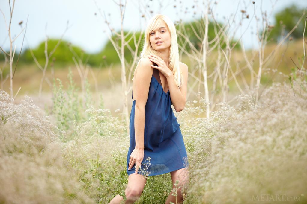 While frolicking through the field she pulls off her dress and has some naked good times.