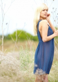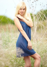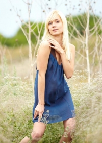 Skinny blonde gets naked in a field