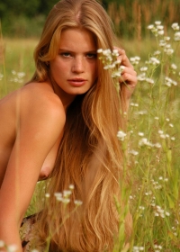 Slim blonde plays her favorite sex games in the middle of the field on a hot summer day