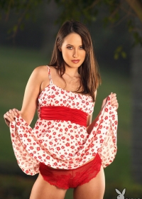 Slim brunette goes for a walk in a park. She undresses and masturbates on a bench.