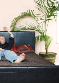 Climbing on top, this babe pulls her panties to the side and stabs herself on his hard, thick cock.