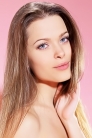 Skinny cutie lies down on black leather couch to play with her clean shaved pussy