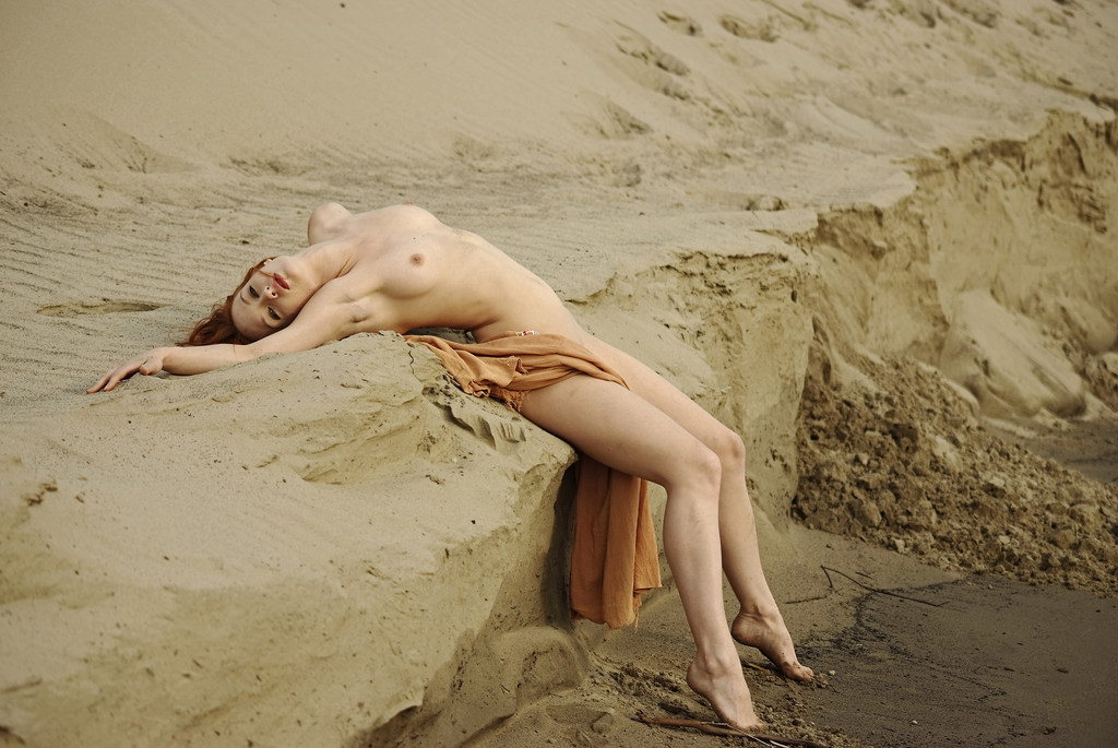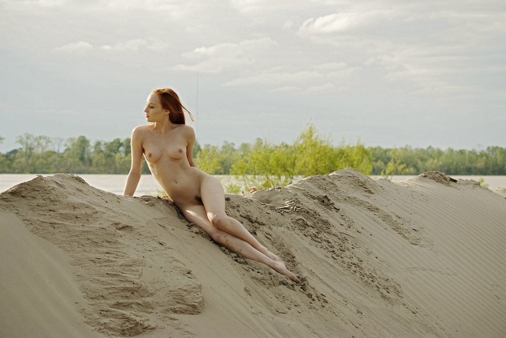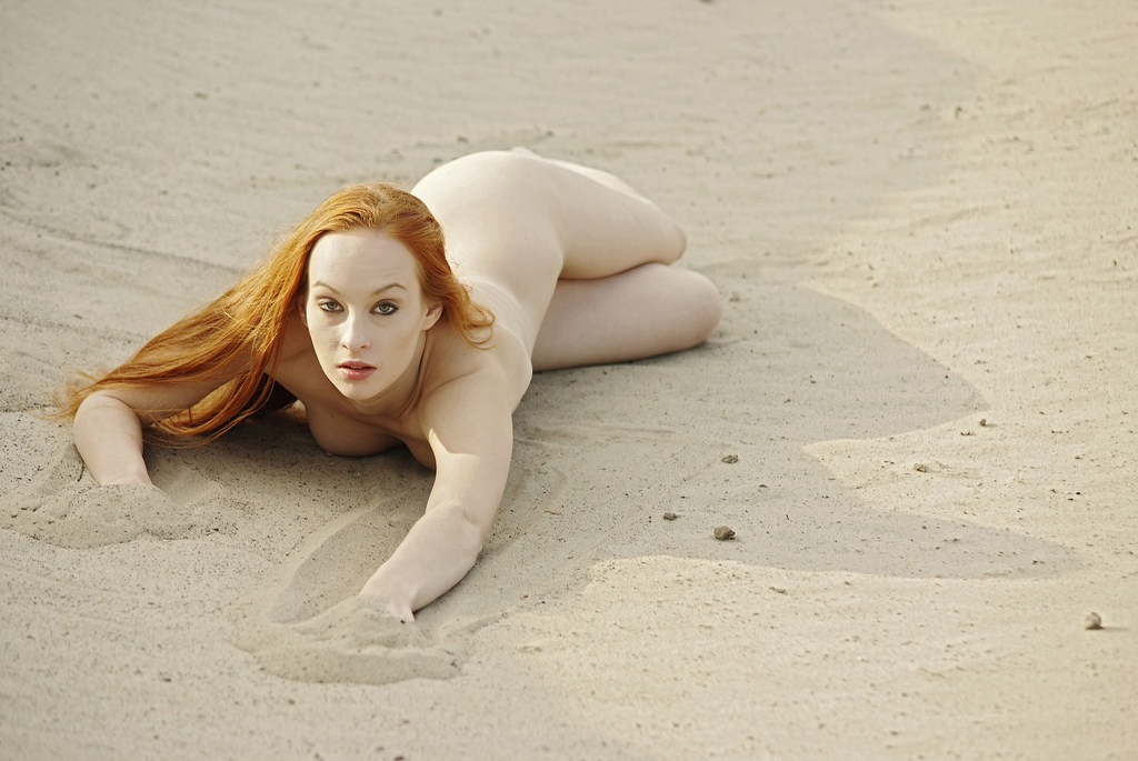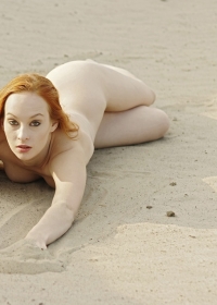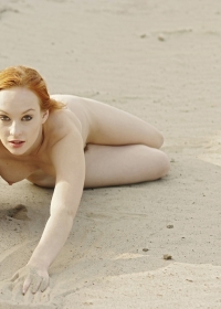 Wonderful redhead mademoiselle is demonstrating her fantastic naked body on the beach
