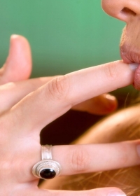 Sliding her panties to the side, she slips a finger in her wet pussy then licks it clean and enjoys the taste.